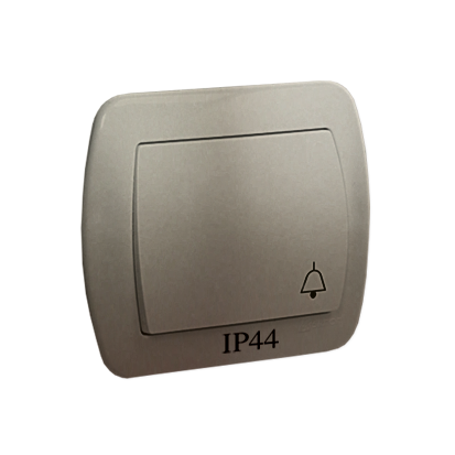 KONIEC VÝROBY - K DISPOZÍCII DO VYPREDANIA ZÁSOB, tlačidlo "zvonček" č.1/0 vo verzii IP44, (kompletný výrobok), Simon Akord, IP44, 10AX, hliníkový, matelizovaný