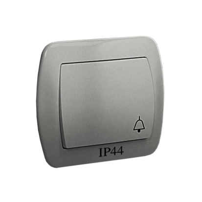 KONIEC VÝROBY - K DISPOZÍCII DO VYPREDANIA ZÁSOB, tlačidlo "zvonček" č.1/0 vo verzii IP44, (kompletný výrobok), Simon Akord, IP44, 10AX, hliníkový, matelizovaný