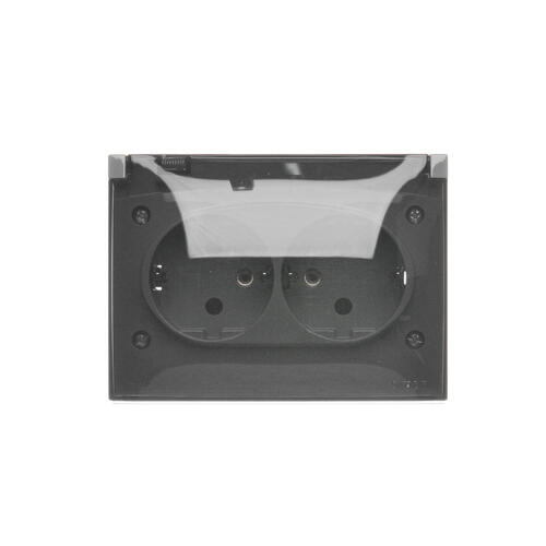 - Dvojitá kompaktná zásuvka Schuko IP44, klapka transparentná počet produktov: 2