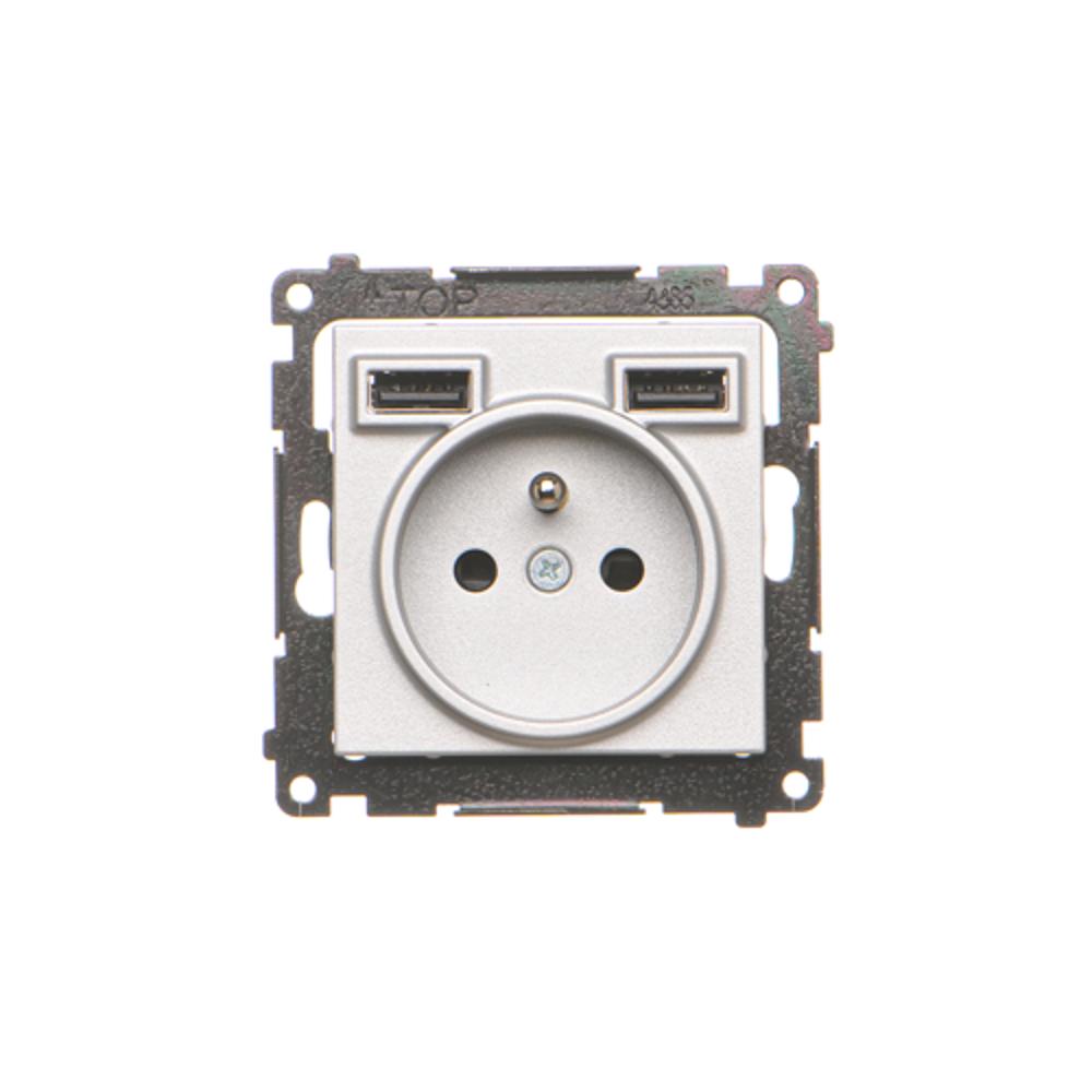 STIAHNUTÝ Z PONUKY - do vypredania zásob, zásuvka s USB nabíjačkou, (prístroj s krytom), Simon 55, IP20, 16A, hliník matný