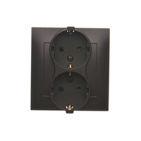 Dvojitá zásuvka s uzemnením typu Schuko s clonkami - škandinávska verzia, (kompletný výrobok), 16A, 250V, pružinové svorky, antracitová
