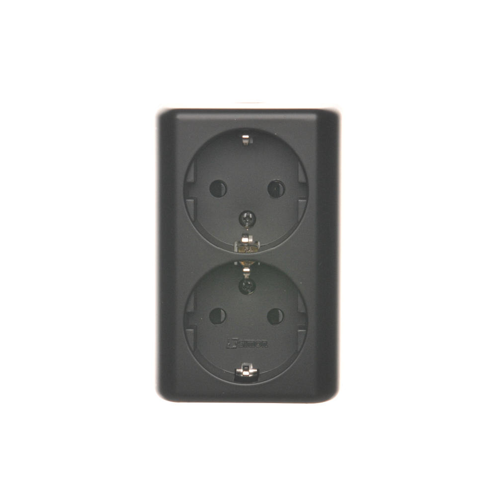 Dvojitá zásuvka s uzemnením typu Schuko s clonkami - škandinávska verzia, (kompletný výrobok), 16A, 250V, skrutkové svorky, antracitová