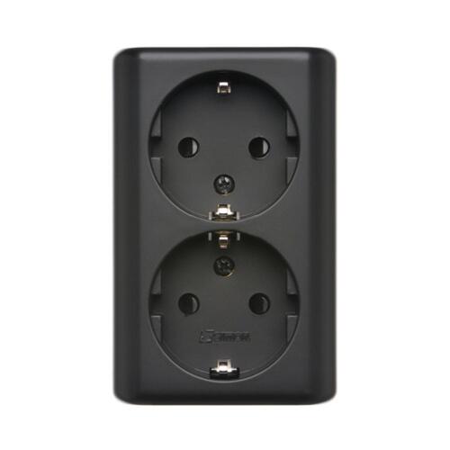 Dvojitá zásuvka s uzemnením typu Schuko s clonkami - škandinávska verzia, (kompletný výrobok), 16A, 250V, pružinové svorky, čierny matný