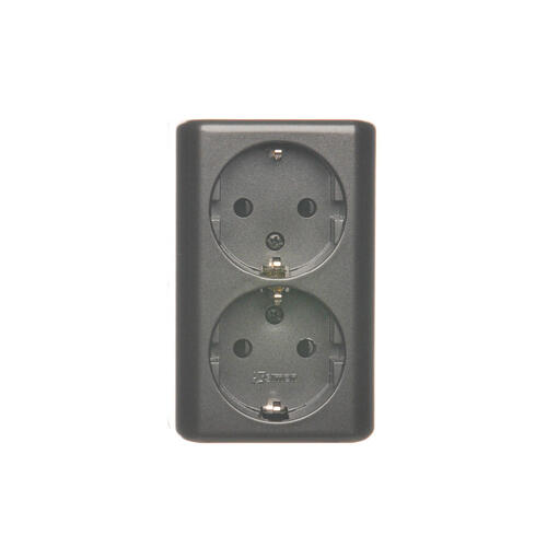 Dvojitá zásuvka s uzemnením typu Schuko s clonkami - škandinávska verzia, (kompletný výrobok), 16A, 250V, skrutkové svorky, antracitová