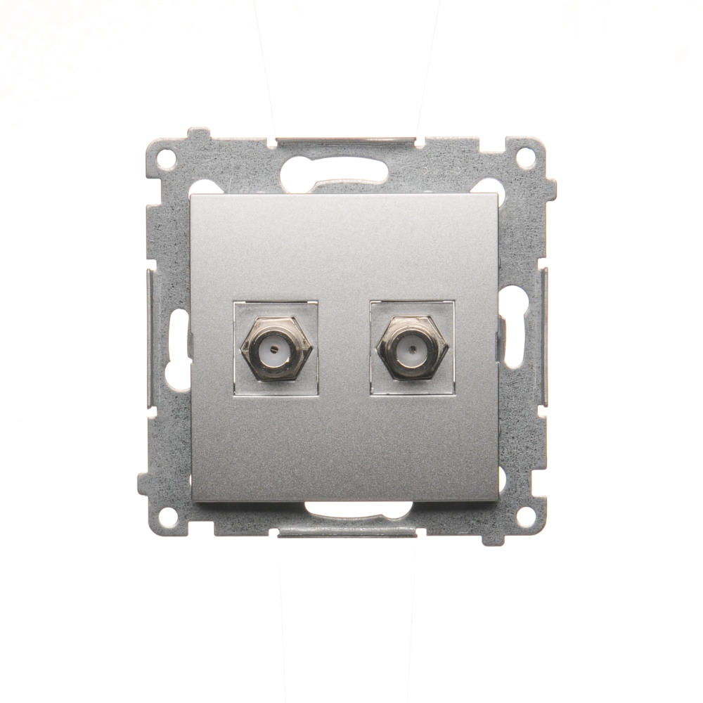Anténna zásuvka na "F" konektor dvojitá, strieborná matná