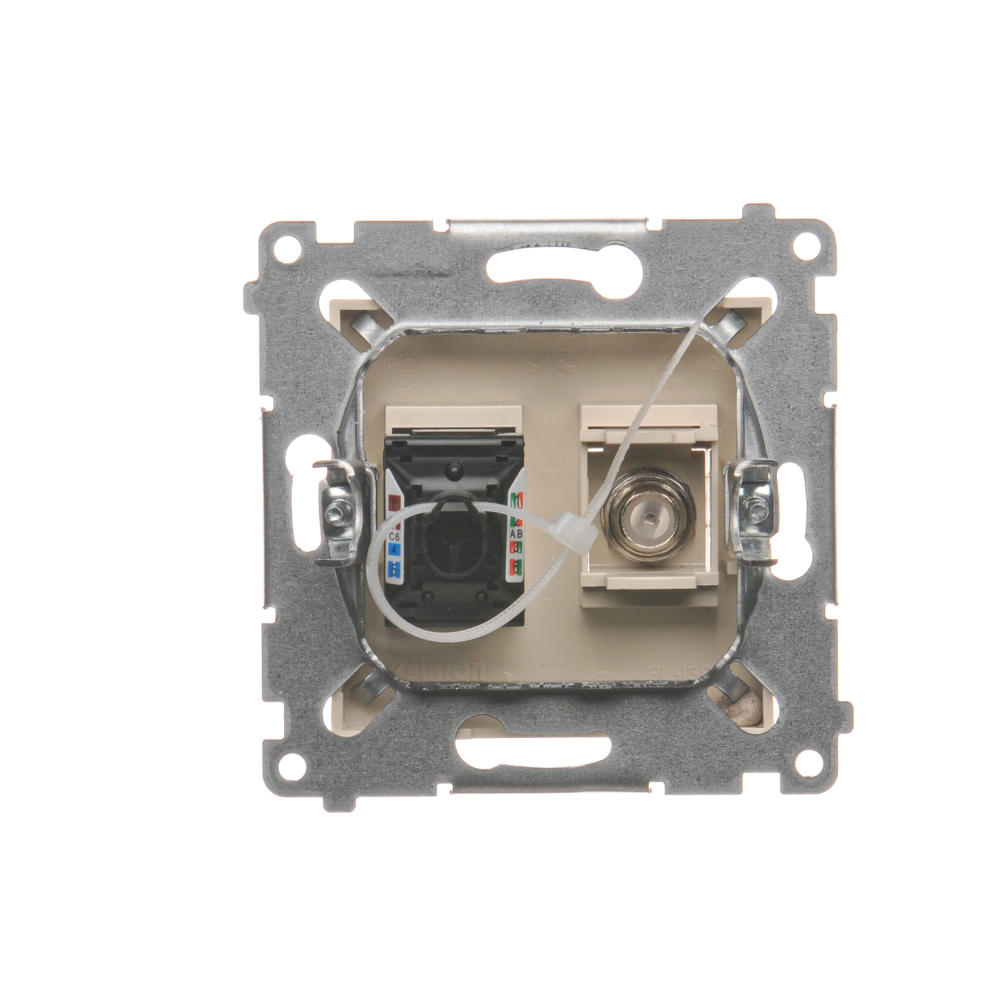 Anténna zásuvka na „F” konentor + počítačová RJ45 kat. 6, krémová