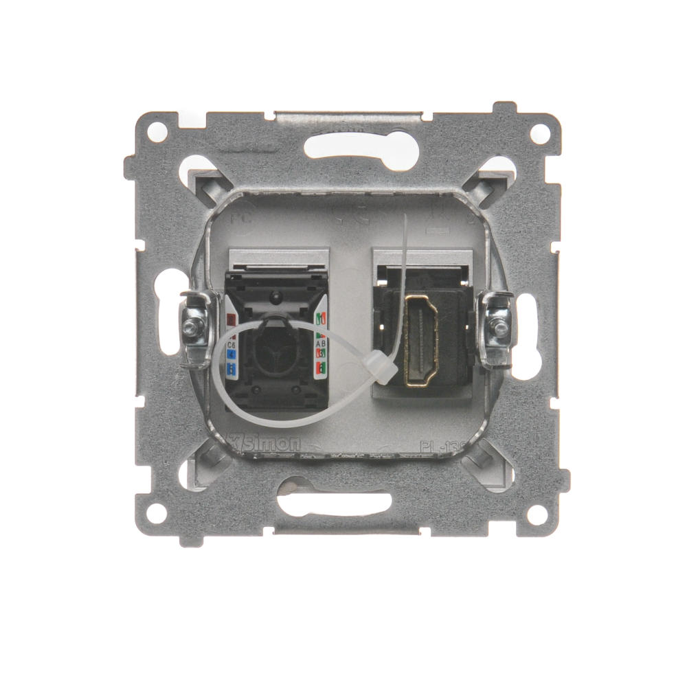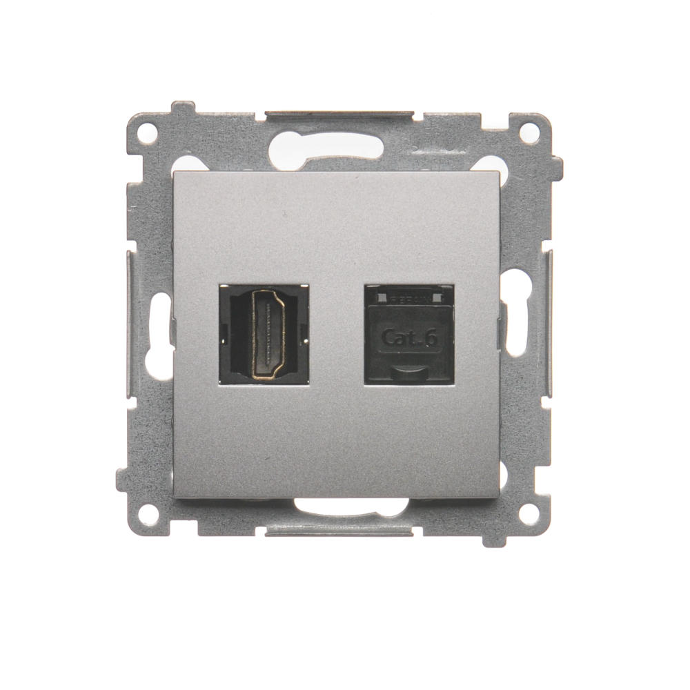 Zásuvka HDMI + počítačová RJ45 kat. 6, strieborná matná