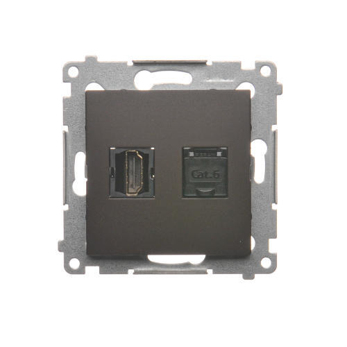 Zásuvka HDMI + počítačová RJ45 kat. 6, hnedá matná