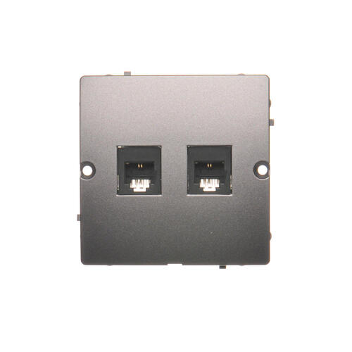 Dvojitá telefonická zásuvka RJ11, (prístroj s krytom), nerez, metalizovaný