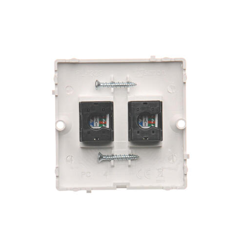 Počitačová zásuvka dvojitá RJ45 kategórie 5e, (prístroj s krytom), biela