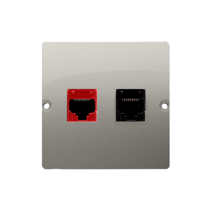 Počítačová zásuvka RJ45 kategórie 5e + telefonické RJ12, (prístroj s krytom), nerez, metalizovaný
