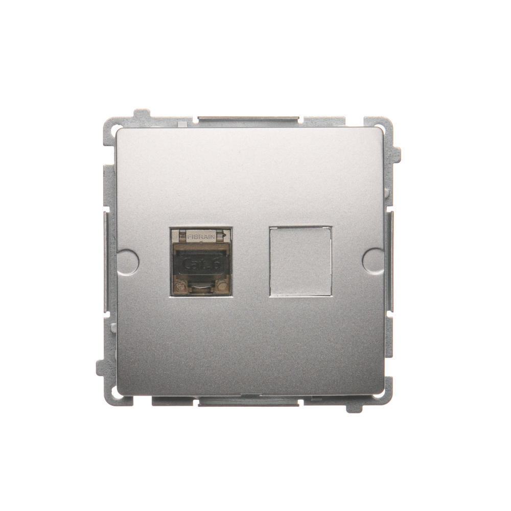 Jednoduchá tienená počítačová zásuvká RJ45 kategórie 6 s protiprachovou clonou, (prístroj s krytom), saténový, metalizovaný