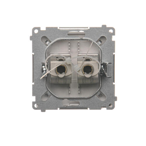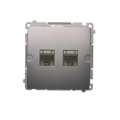 Dvojitá tienená počítačová zásuvka RJ45 kategórie 6 s protiprachovou clonou, (prístroj s krytom), saténový, metalizovaný