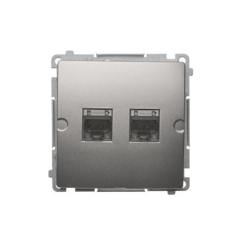 Dvojitá tienená počítačová zásuvka RJ45 kategórie 6 s protiprachovou clonou, (prístroj s krytom), saténový, metalizovaný