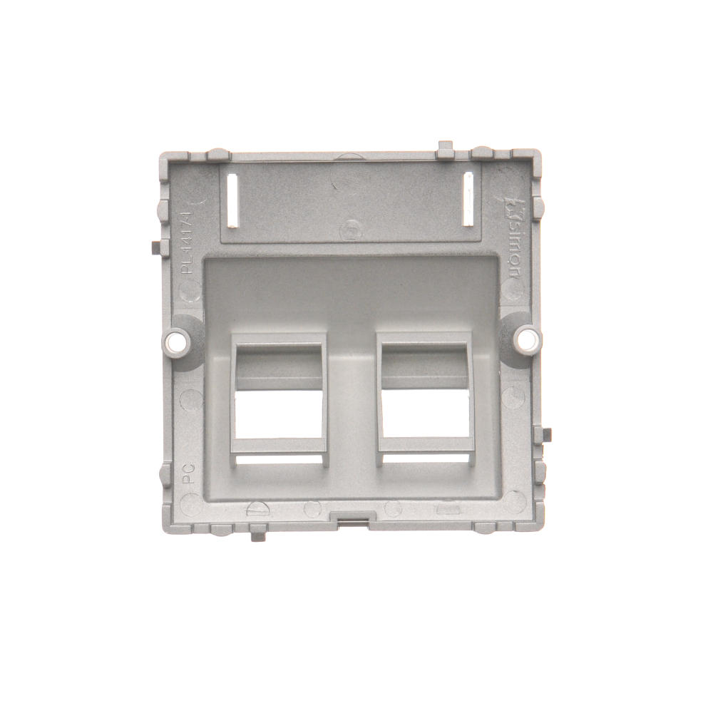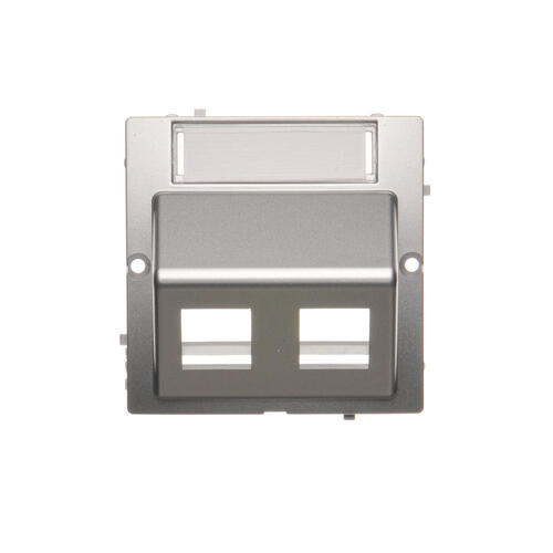 Kryt teleinformačních zásuviek na Keystone šikmé dvojité s popisným poľom. montáž krytu na pätky alebo na skrutky, (kryt), strieborná matná